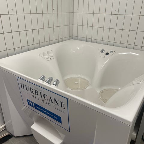 Den står ute og oppblåst, så bare si ifra 1 dag før så tømme jeg den for luft og gjøre jeg den klar for henting :)
