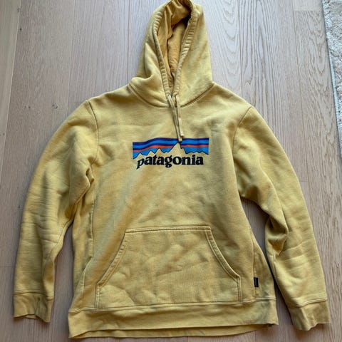 Patagonia hettegenser for herre / Henne i størrelse L. Genseren er Marineblå og laget av bomull. Klassisk hette med snøring og kengurulomme foran. Stor Patagonia-logo på brystet. Passer til hverdagsbruk og fritidsaktiviteter.