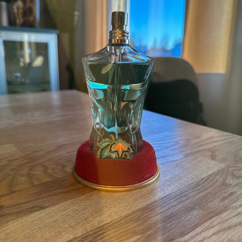 Jean Paul Gaultier Le Beau parfyme for menn. Flasken har en kroppformet design i klart glass med turkisblå væske og gullfargede detaljer. Parfymen leveres med original grønn metallboks med gullfarget tekst «Le Beau». Passer som herreduft til daglig bruk eller ved spesielle anledninger.