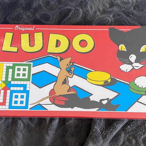 Ludo brettspill i klassisk utgave. Spillet leveres i original eske med illustrasjoner på lokket. Standard Ludo-brett med brikker og terning der målet er å få alle egne brikker rundt brettet og i mål før motspillerne. Passer for flere spillere og egner seg til familiespill og sosiale sammenkomster.