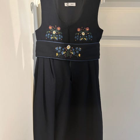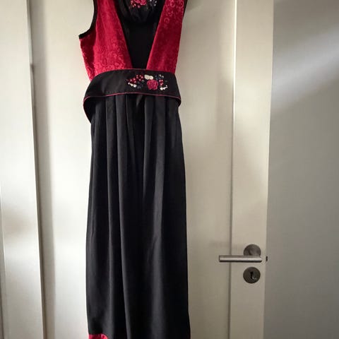 Festdrakt med mønstret brokadevest. Stakk med brokadebånd nederst, skjult knepping foran med trykknapp og hemper. Brodert bånd i livet med borrelås for justerbar lengde. Gjør festdrakten komplett med skjorte og veske som selges separat!