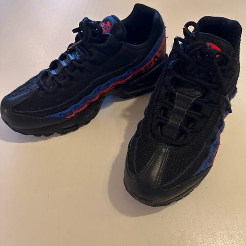 Modellen har overdel i tekstil og syntetisk materiale i svart farge med hvit mellomsåle og synlig Air Max-demping i sålen. Passer som fritidssko og til hverdagsbruk.