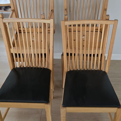 God kvalitet og tyngde i stolene. Hvem som har laget og designet stolene vites ikke, men Finn har ikke det alternativet.