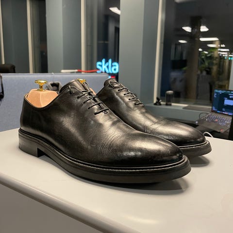 Pene sorte skinnsko fra ærverdige Church i London. Kjøpt i butikken. Koster nye 830 pund. Skinnet er helt nydelig, ser ikke brukt ut. Skinnsåler har litt bruksmerker og normal slitasje