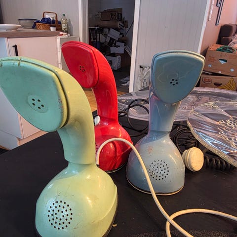 Dette er ikke masseprodusert ny-retro, men et ekte tidsvitne fra analog telefontid – stadig vanskeligere å finne i denne fargen.