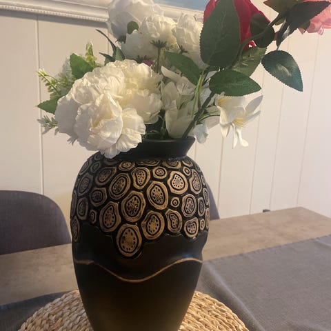 Høy vase med kunstige blomster