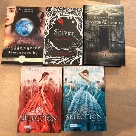 Bokpakke med diverse fantasybøker og young adult på engelsk. Må hentes, selges samlet