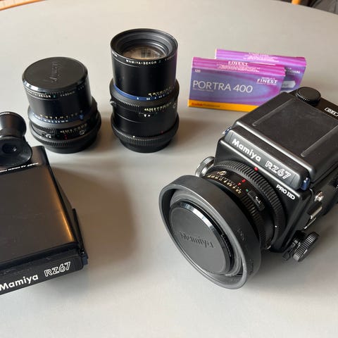 Mamiya RZ67 Professional analog mellomformatkamera. Har endeleg fått laga ei annonse som inneheld alle linser og utstyr som følger med. Samla verdi ligg over 20.000 etter det eg har kunne rekne ut med dei prisane eg fant på nettet. Då har eg tatt utganspunkt i gjennomsnittsprisen ut frå dei prisane eg har funne. Selger til 15.000 kroner med 5000 kroner i rabatt. Håper at du finn dette å vere eit godt kjøp, så vi blir fornøgd begge to :-).