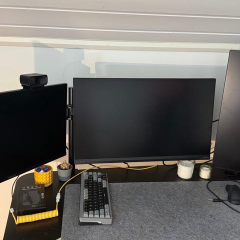 Selger to pent brukte monitorer som kun har vært brukt til kontorarbeid. Monitorene er i god stand, uten feil eller skader. Inkluderer også monitorarmer, som gir fleksible justeringsmuligheter og et ryddig oppsett på skrivebordet.