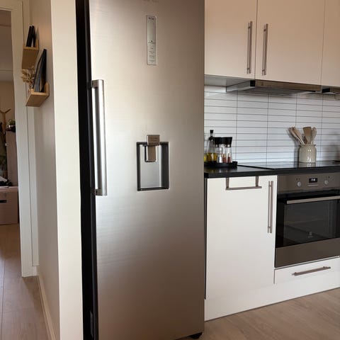 Koble kjøleskapet til VVS-systemet og få kaldt vann og ferske isbiter når du måtte ønske - kun med ett enkelt knappetrykk - takket være dispenseren i døren.