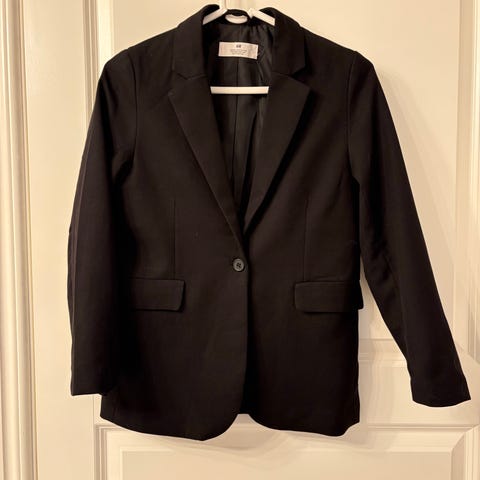Zara kåpe til jente i størrelse 134. Kåpen er svart og laget med ull i materialblandingen. Den har klassisk krage, én knapp i front og to store frontlommer. Lengden går ned over hoftene, og modellen har rette ermer. Passer til hverdagsbruk og mer formelle anledninger i kjøligere vær.