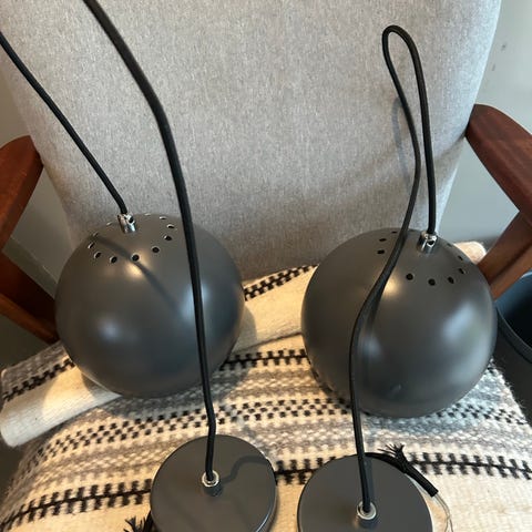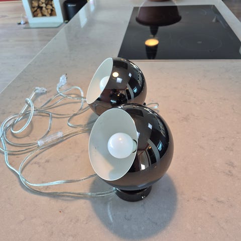 To ballamper av danske Frandsen. Begge er hele og pene. 18cm. En i messing-utførelse og en i sort.