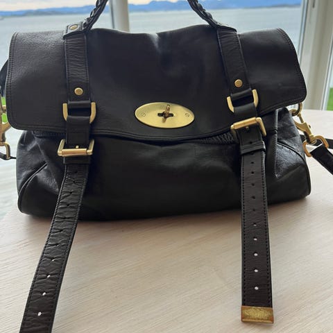 Mulberry skulderveske i svart lær for dame. Vesken har justerbar skulderrem og lukkes med karakteristisk Mulberry-spenne i metall. Innvendig har den hovedrom, glidelåslomme og åpen lomme, med fôr preget med Mulberry-logo. Metallbrikke med serienummer er festet ved innerlommen. Leveres med tilhørende støvpose slik som vist på bildene.