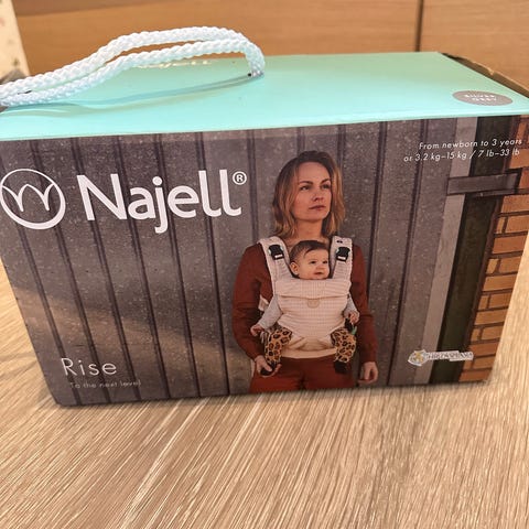 Najell Rise bæresele i mint kordfløyel. Bæreselen har polstrede skulderstropper og hoftebelte som fordeler vekt jevnt. Justerbare stropper og spenner gjør at den kan tilpasses ulike brukere og bærestillinger. Mykt, strukturert ytterstoff i kordfløyel og innside i glatt tekstil gir støtte og komfort for både bærer og barn. Egnet til å bære barn tett inntil kroppen på mage eller rygg, avhengig av barnets alder og behov.