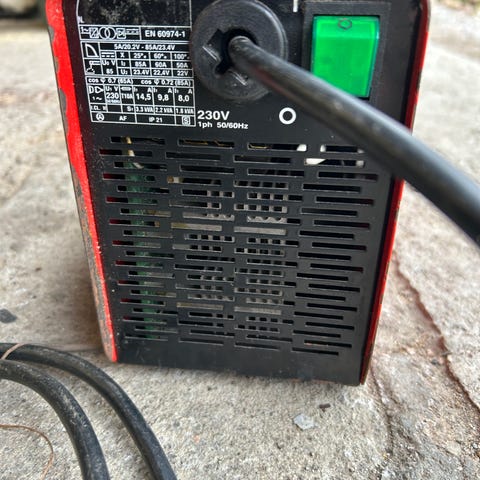 Nesten nytt sveiseapparat med maske og en pakke med OK 53.16 Sveisepinner