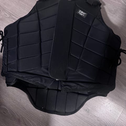 Helt ny sprang vest. Kun prøvd på. Nypris:1500kr CRW Demeter Air sikkerhetsvest for voksen i størrelse AXS. Vesten er svart og har perforert design for økt ventilasjon. Justerbare stropper med borrelås gjør at vesten kan tilpasses kroppen. Brystmål ifølge etikett: 79–87 cm. Vesten er merket i henhold til EN 13158:2018 nivå 3. Egnet som sikkerhetsvest til ridning og annen aktivitet der det er behov for ekstra beskyttelse av overkroppen.
