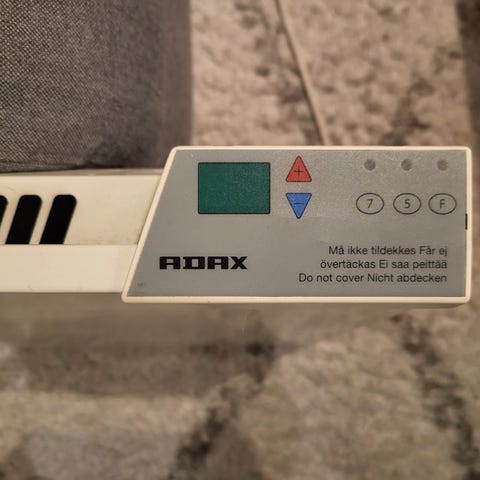Adax panelovn (type NP 12 KDT) med følgende spesifikasjoner: