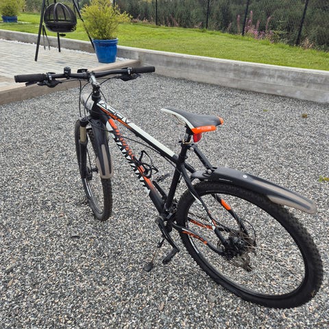 Denne sykkelen med 26 hjul er i utmerket stand og kvalitet. Bremsene fungerer, og girskiftene går jevnt.