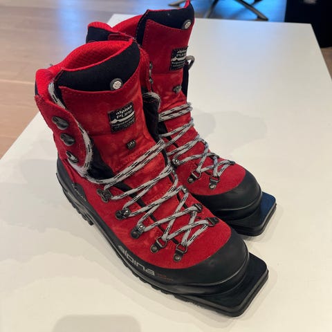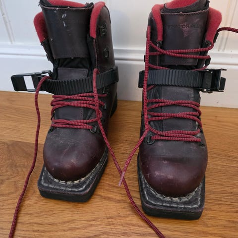 Aliko 75mm, italienske støvler til fjellski og turskøyter. Svart skinn med lilla lisser og detaljer. Støvlene har kraftig såle og justerbare spenner rundt ankelen for ekstra støtte. Polstret skaft gir bedre komfort rundt ankelen. Svært stabile. Egnet som skistøvler til bruk med tradisjonelt telemarkski/fjellski.