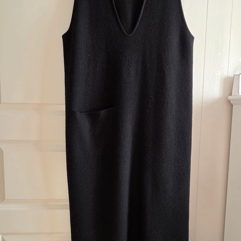 Nydelig lang COS ullkjole (ren ull). Jeg er 170 cm og den rekker meg til nedre legg. Split på begge sider. Veldig fin som plain eller med med belte i livet. Modellen er rett. Kan sendes eller hentes på Rosenhoff