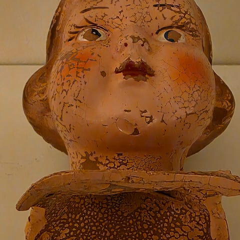 Dukkehode med soveøyne. Kropp som hører til. Siste bildet