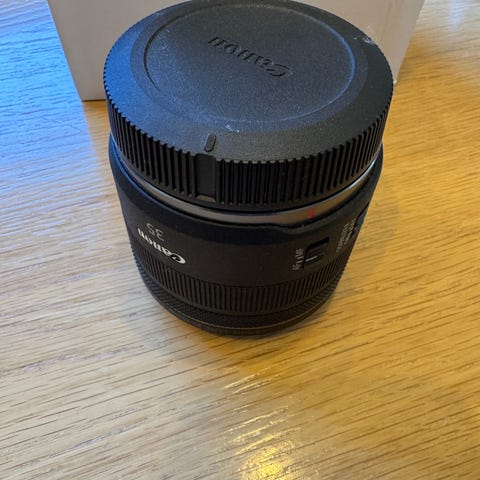 Canon RF 35mm objektiv i svart. Fast brennvidde på 35 mm, egnet for Canon-kameraer med RF-fatning. Kompakt konstruksjon med manuell fokusring. Rask autofokus. Fint objektiv.