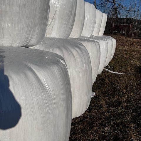 Tørrhøy / ensilage med 14 lag plast. 430 kg pr. ball. Frakt kan ordnes.