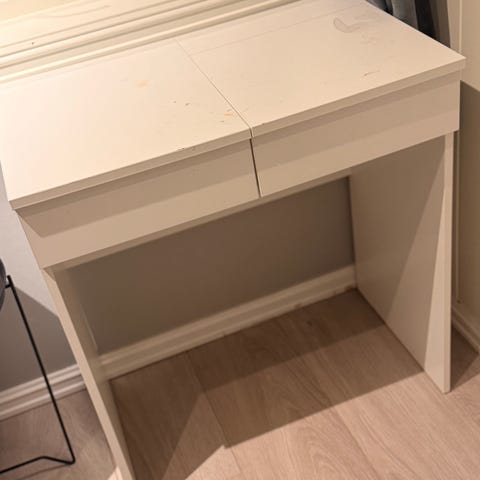 Kompakt sminkebord med oppbevaringsplass.