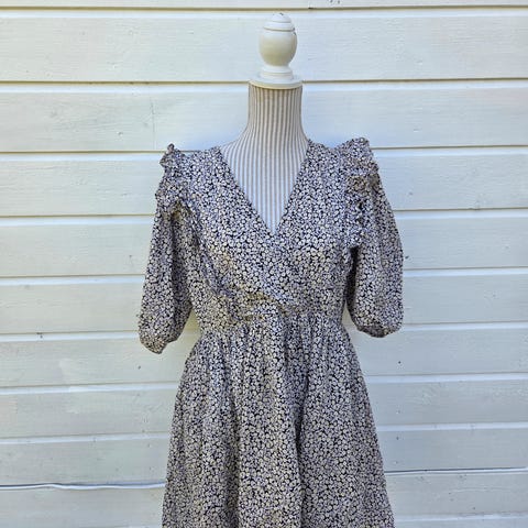 Blomsterkjole i tynt bomull-/dongeristoff. Ikke brukt mange ganger.