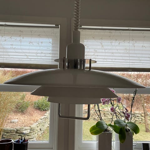 Lampen gir et moderne uttrykk og fungerer både som belysning og blikkfang i rommet.