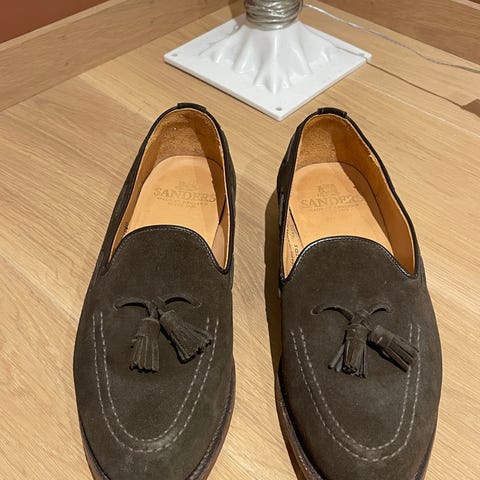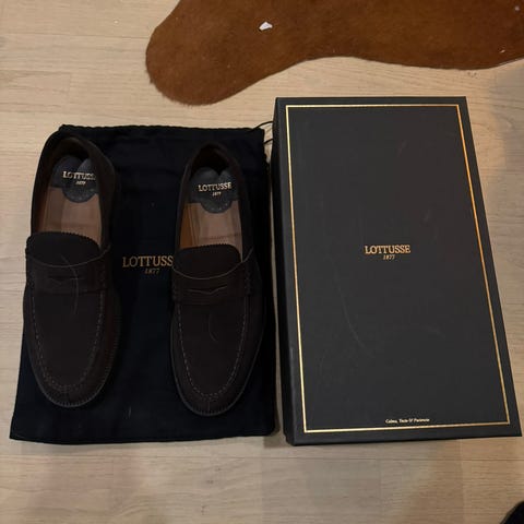 Nydelige Oxfords fra Santoni i størrelse 9 - oppleves som en true to size, men smal 43. Skoene er i en veldig dyp onyx farge som oppleves som sort ved vanlig belysning, men har en aksent som fremkommer på bildene. Skoene er svært lite brukt da de dessverre ble for små for meg.