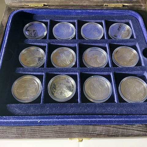 Stor sølvlott – ca. 639 g fint sølv – mynter og medaljer