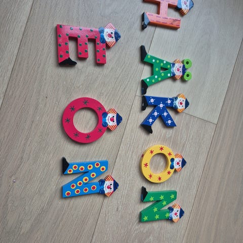 Robuste bokstaver som tidligere er brukt som dekorasjon på barnerom.