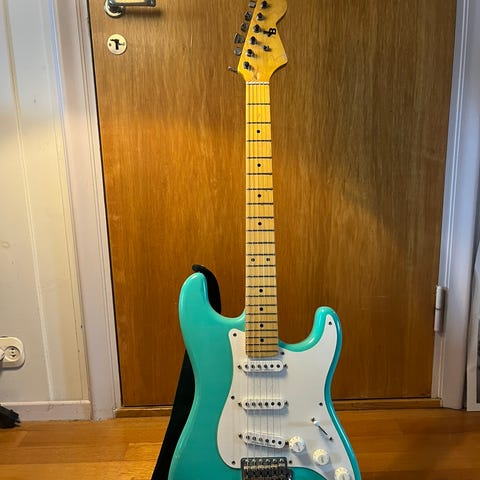 Fender Vintera 60 Road worn stratocaster i nydelig lake placid blue selges. Fin gitar med god spillbarhet. Lite/ingen båndslitasje. Fine krakkeleringer rundt omkring på kroppen.