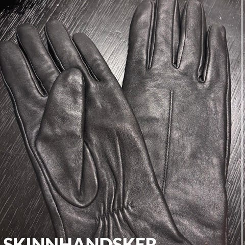Hanskene er svarte og laget av ekte skinn med fôr som inneholder ull og akryl (se vaskelapp for nøyaktig sammensetning og vaskeanvisning).