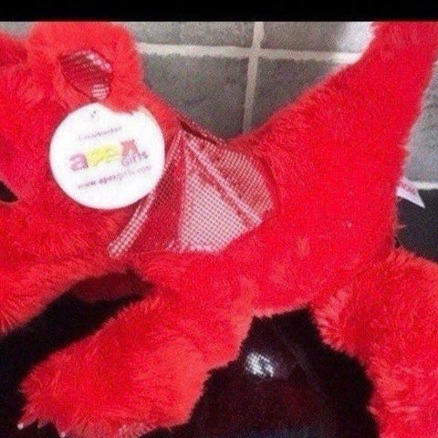 Rød Drage kosedyr laget av mykt materiale. Passer for barn som et lekent og dekorativt leketøy.