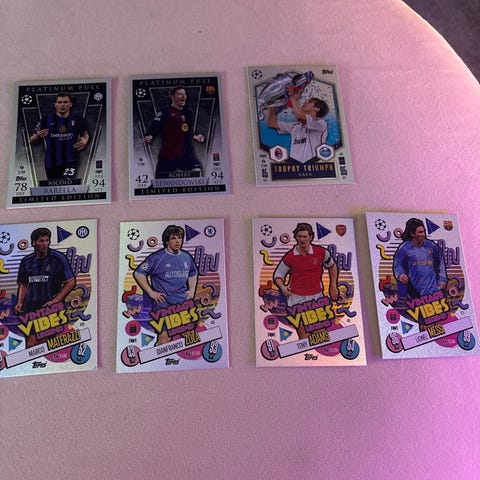 Topps Match Attax fotballkort samling. Inneholder ulike kort med fotballspillere fra flere europeiske klubber og turneringer. Kortene er organisert i plastlommer i en perm. Samlingen består av både standardkort og spesialkort med ulike design og effekter. Egnet for samlere av fotballkort og Match Attax-serien.