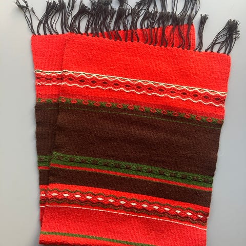 norsk - duk - ullduk - ulløpe - håndarbeid - husflid - naturmaterialer - retro - modern - blå - hvit - rød - grønn - brun - naturlige materialer - tekstilkunst - kunsthåndverk - folkekunst