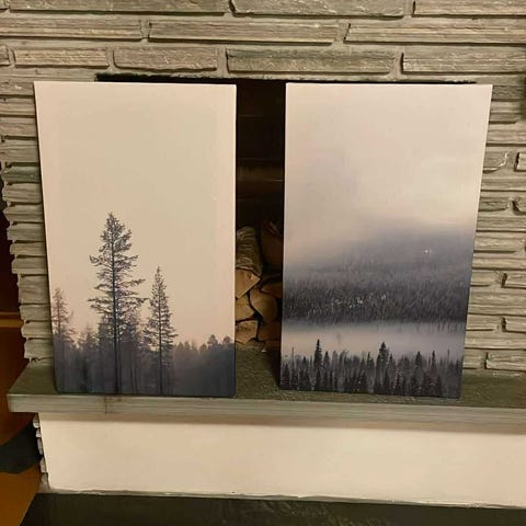 Begge bildene er innrammet i pene, lysegrå rammer og er i veldig god stand.