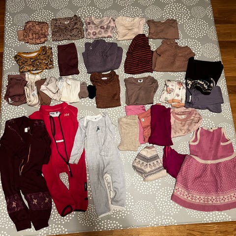 Jule klespakke fra newbie i strl 80, kun brukt noen få ganger i desember, ikke noe synlige merknader, selger da dette ikke blir brukt lenger. Klesplakken inneholder 2 pysj en fra hm og en fra KappAhl, 2 kjoler, strømpebukse og rød sett fra newbie