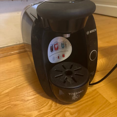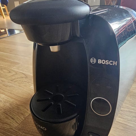 Bosch kaffemaskin for tassimo- kapsler. Har stått ubrukt i 1 år, men er blitt brukt tidligere. Trenger å renses. Må hentes