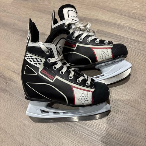 TecnoPro Safine Vita II skøyter for barn i størrelse 35. Klassiske hvite kunsløpskøyter med snøring og metallkroker for god tilpasning rundt ankelen. Kjempe fine kunstløpsskøyter til barn som er kun brukt 2 ganger av 1 barn. Så disse er som nye.
