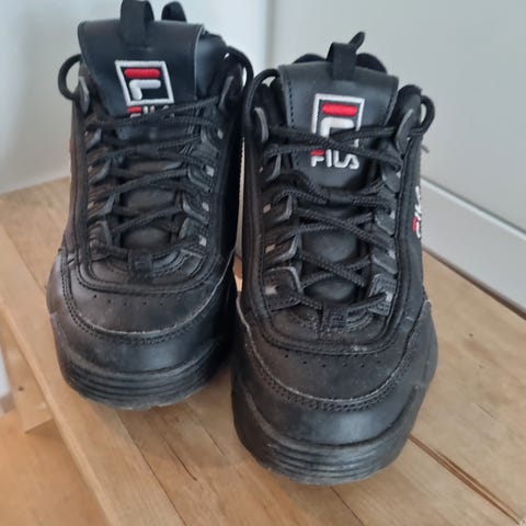 Fila joggesko for barn, unisexmodell i svart med hvit såle. Str 36