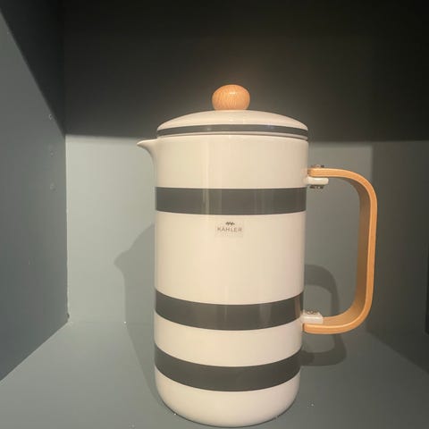 Kähler sett med kjøkkenrullholder og to kverner i tre og hvit keramikk.