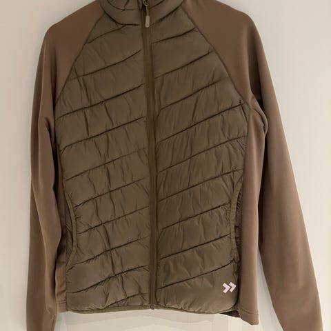 Jakke i kakigrønn med jeansfor`stramming i livet,hette,4 lommer