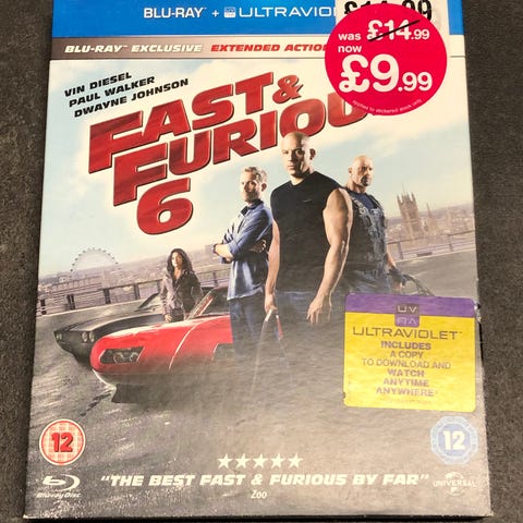 Fast & Furious Blu-ray film. Utgave på Blu-ray med spillefilm i action-sjangeren. Omslaget viser at filmen har aldersgrense 12 år. Egnet for avspilling på Blu-ray-spillere som støtter regionen angitt på platen/omslaget.