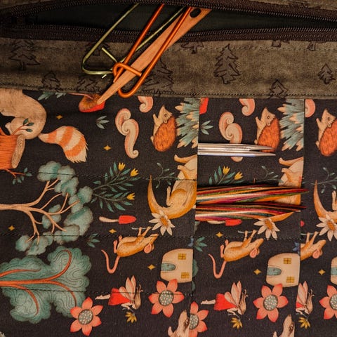 Strikkeutstyr - prosjektbag med tilbehør (nytt)