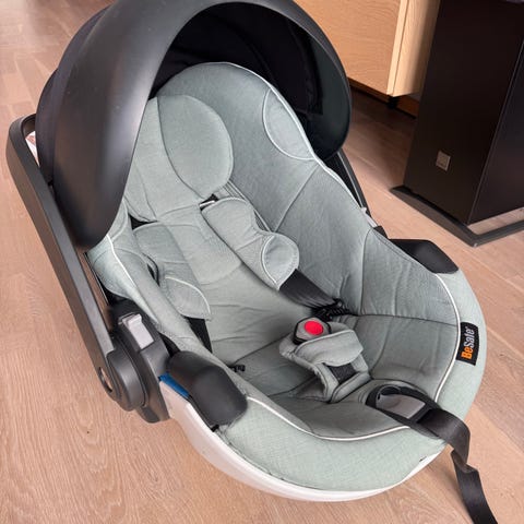 Selger et pent brukt BeSafe Izi go og base til baby. Veldig enkelt å løsne fra bilen og sette det over på barnevogn.