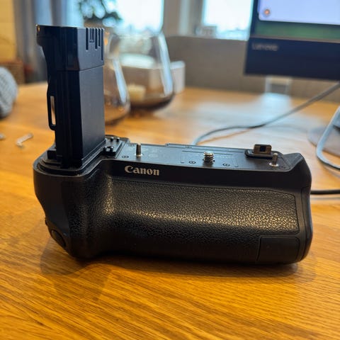 Selger et solid og velholdt Canon BG-E2N batterigrep. Dette grepet gir deg mye bedre ergonomi, spesielt ved fotografering i høydeformat, og plass til to batterier for dobbelt så lang brukstid.