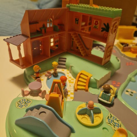 Selger denne som er i fin stand men mangler en liten skiheis, trapp og slede. 2 dukkefigurer som hører til leken følger med. Minimalt med bruksmerker og ingen skader.